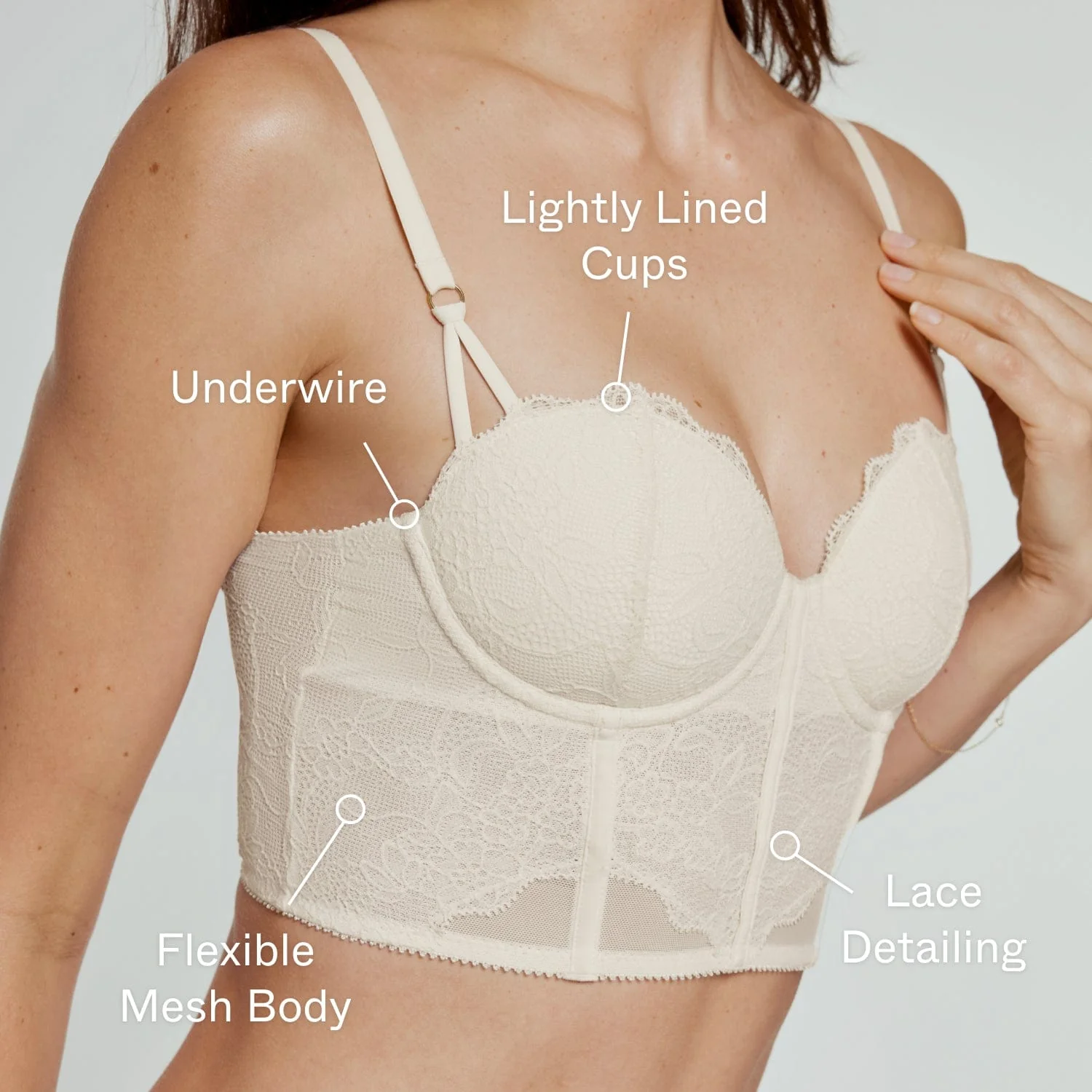 Introducing our first-ever venture out of your underwear drawer—lightly lined corset. Crafted especially for small boobs, this lacey, lightly lined, confidence-and-compliment-inducing corset will take you from bedtime to brunch to the bar to date night… and back again. It’s supportive, it’s versatile, and it’s totally snatching—helping you feel just as good as you look.